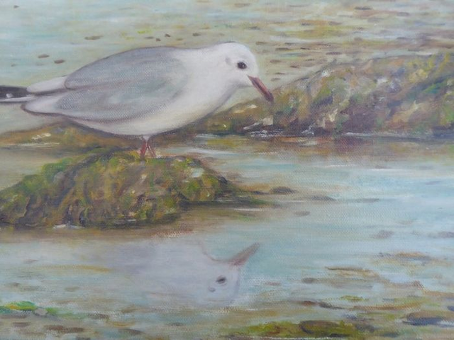 Je l'ai vue de loin et me suis approchée autant que possible. Cherchait-elle quelque nourriture? Sans doute! C'est son reflet qui a attiré mon attention, comme un effet de miroir...